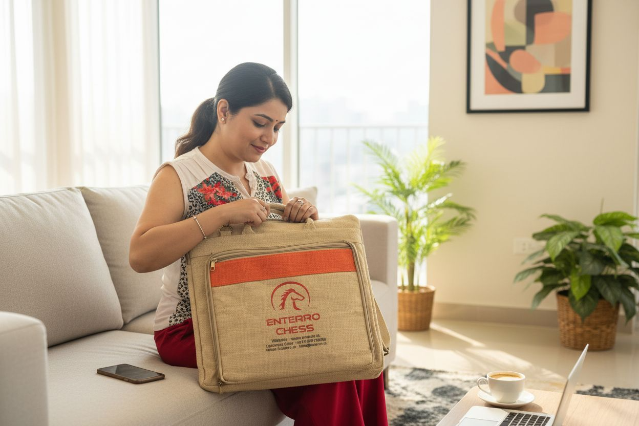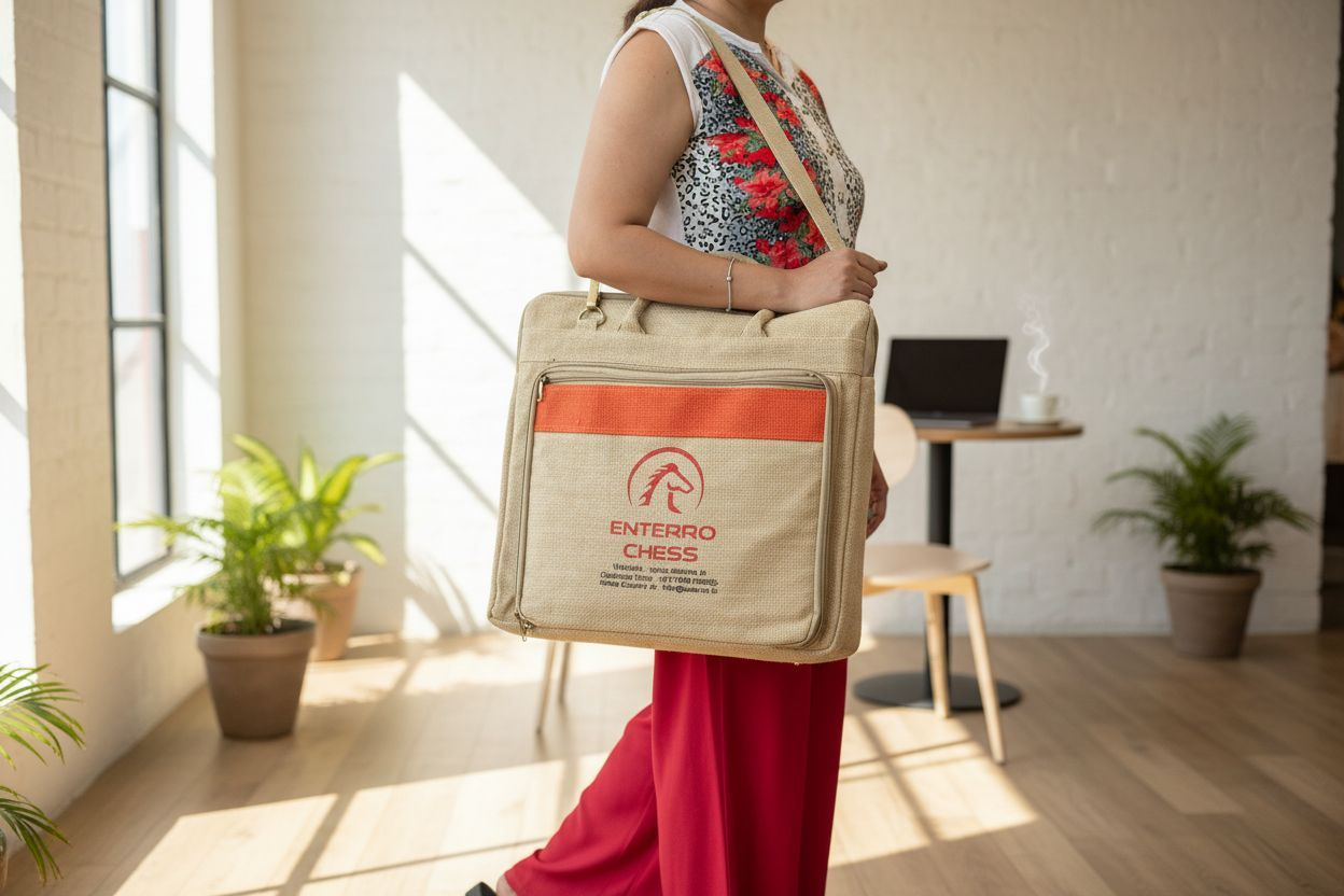 • ► JUTE BAG FOR STORAGE OF CHESS BOARD AND COINS - Environment friendly premium Jute Bag comes for storage of Wooden Chess Board and Chess Pieces. High quality strap and hand holding support for easily carrying the product anywhere.
