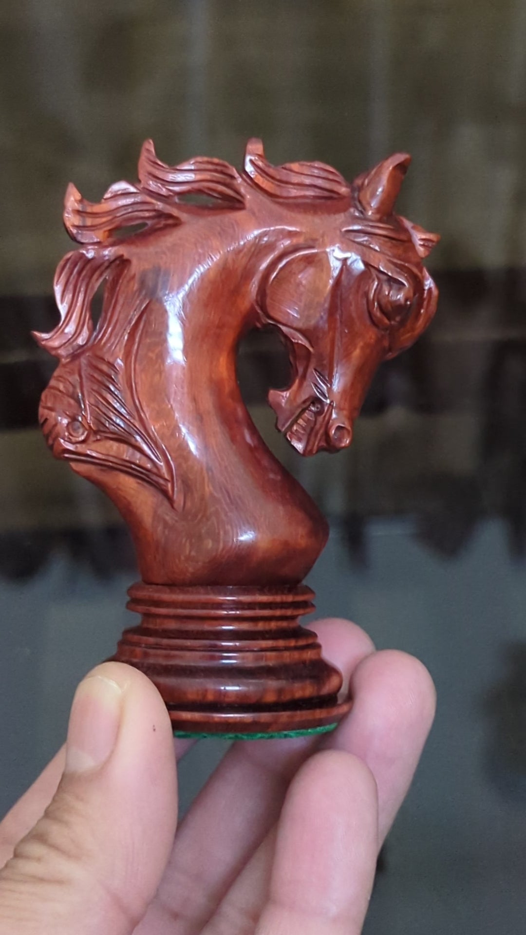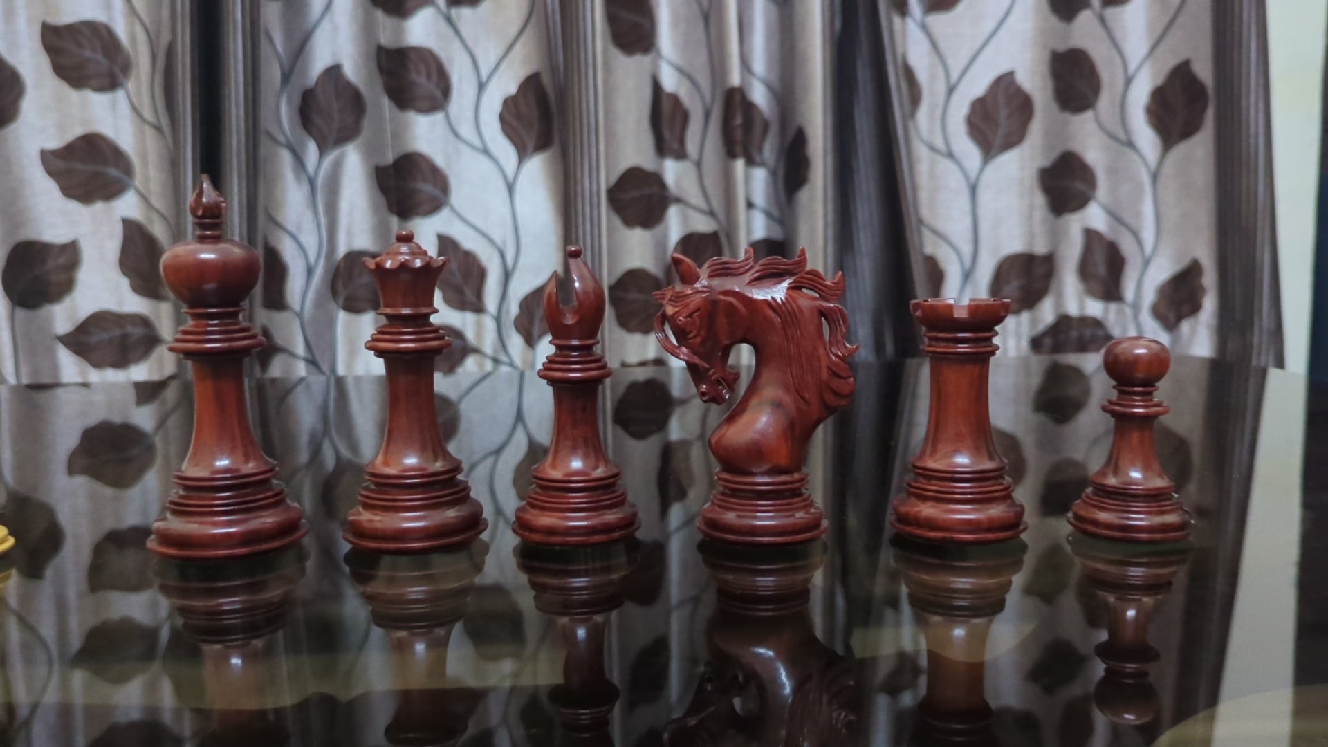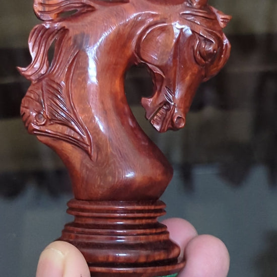 Each piece is meticulously carved from natural Red Rosewood and Boxwood, showcasing the rich tones and textures of luxury hardwoods. -