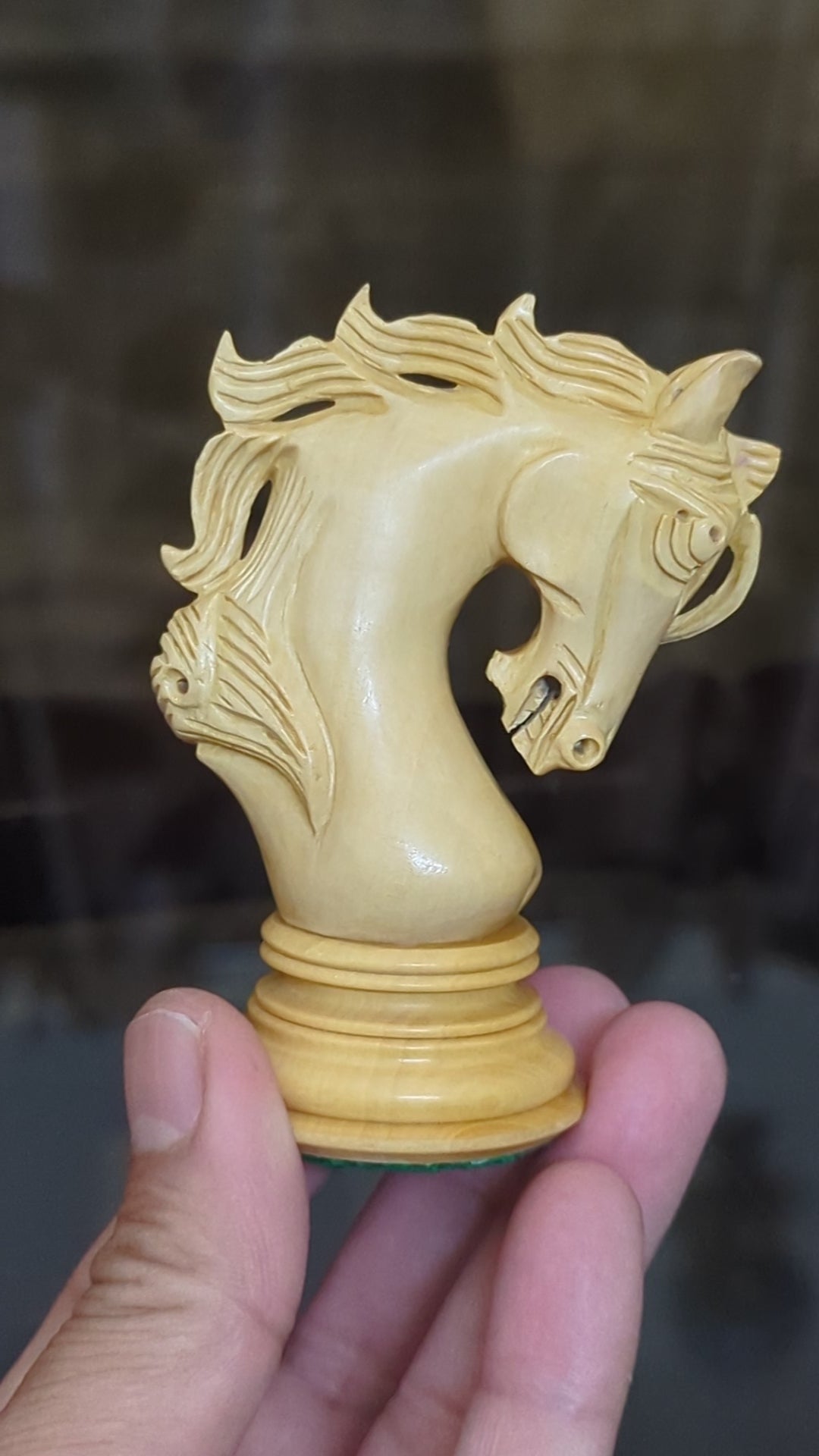 The knight stands out with a bold battlefield motif — sculpted as a warrior horse in motion, commanding attention and adding drama to your board. -