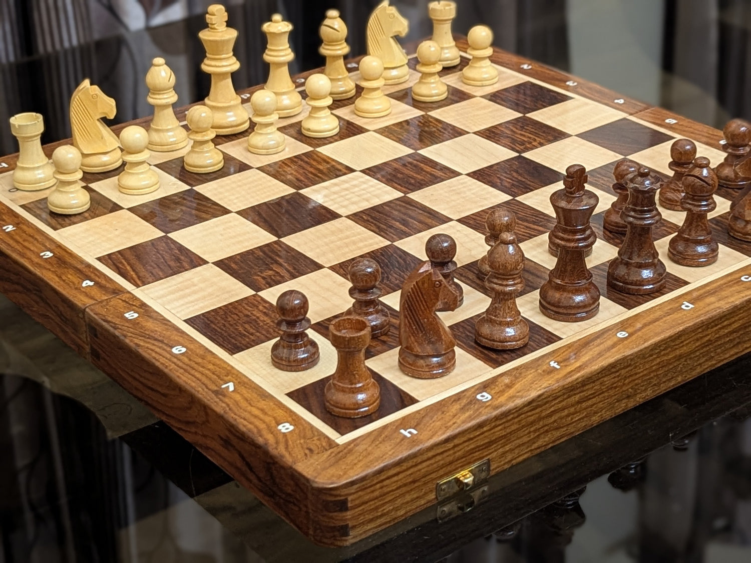 16" x 16" Wooden Foldable Magnetic Chess Board Set with NOTATIONS and - King Size 3" high - Premium Handcrafted Board