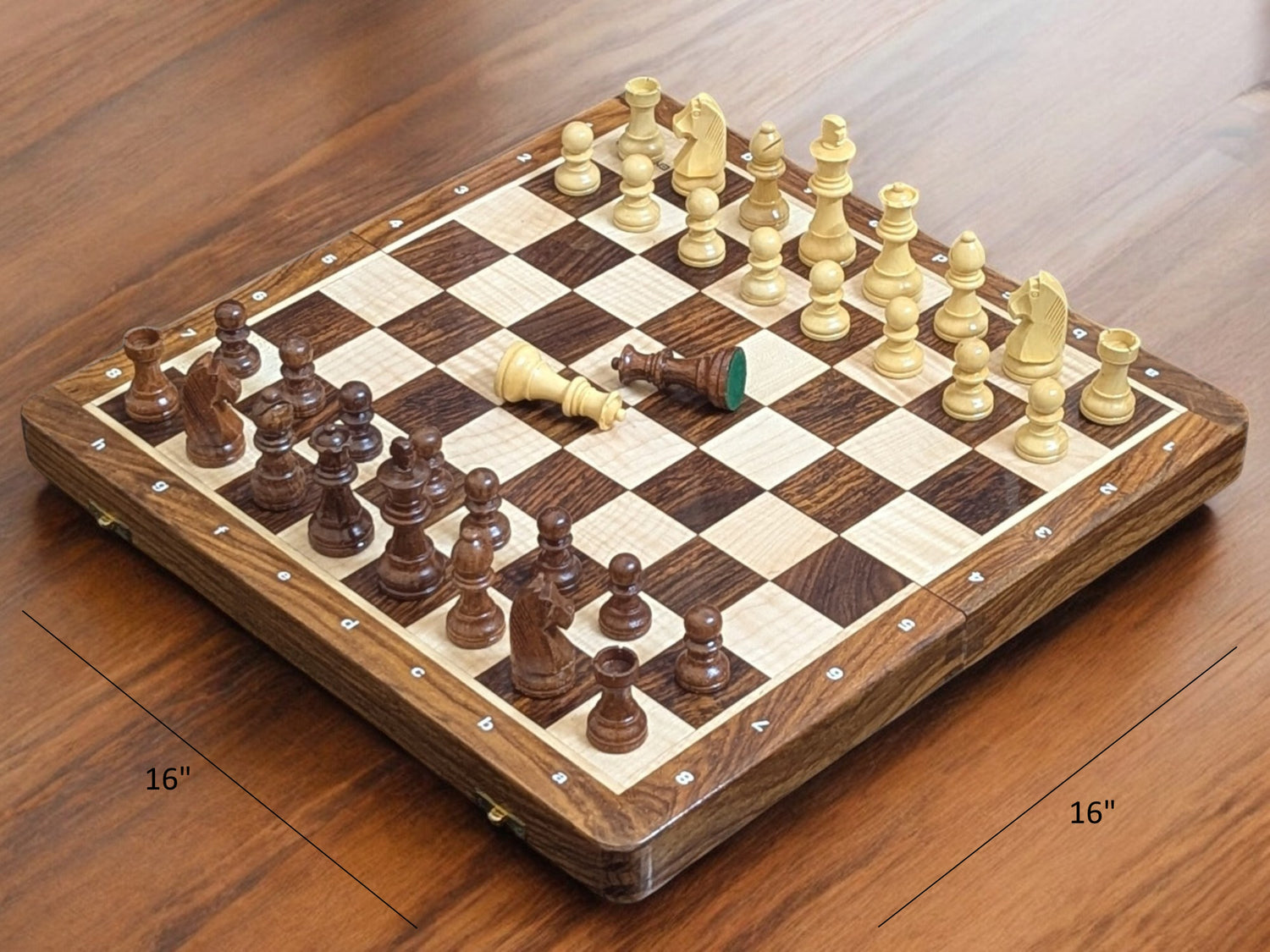 - 16" x 16" Wooden Chess Set - Folding & Magnetic